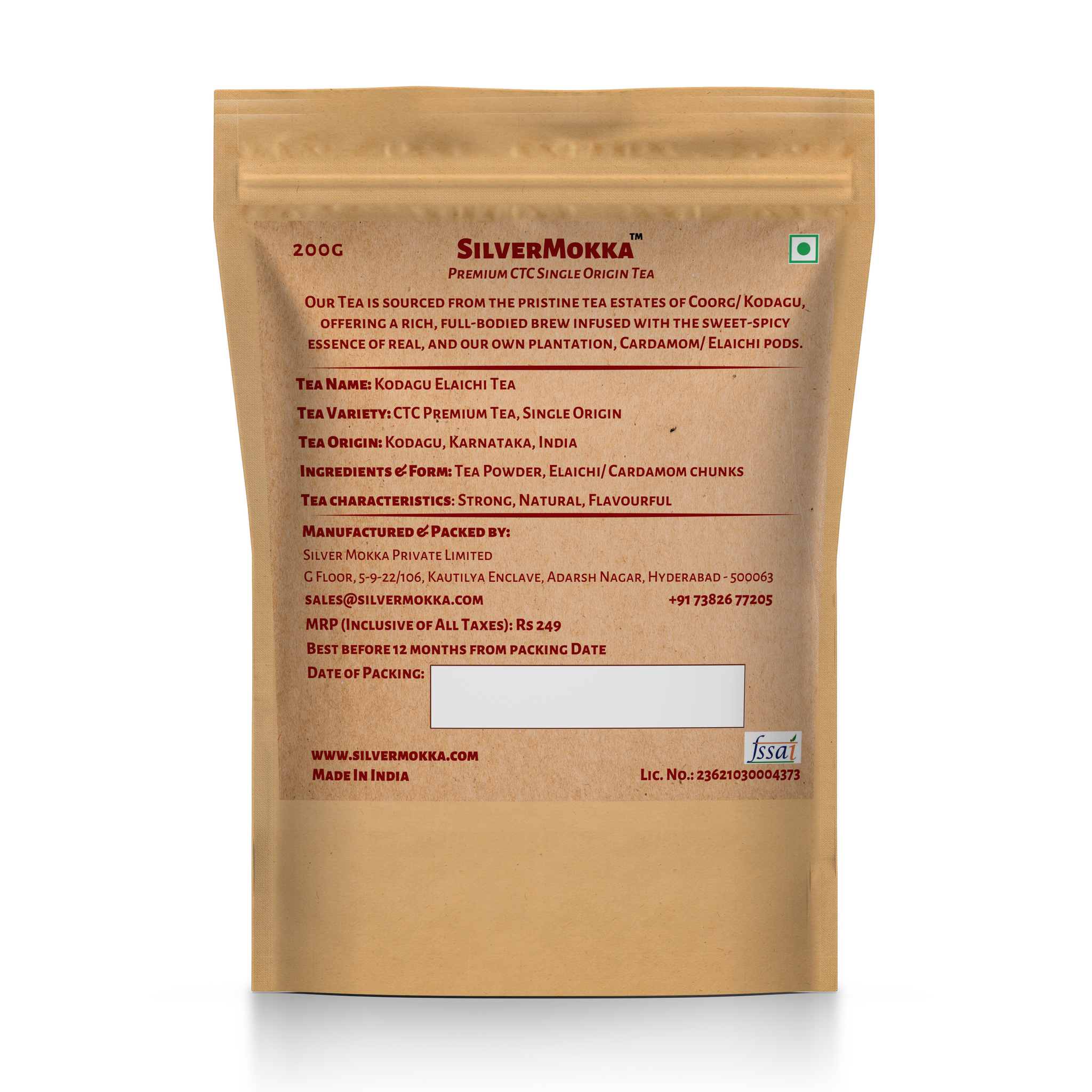 We source our CTC Premium Dust/ Leaf Tea from Kodagu, Karnataka and blend with Elaichi (Cardamom), after you order, and then packed to retain the freshness and aroma.