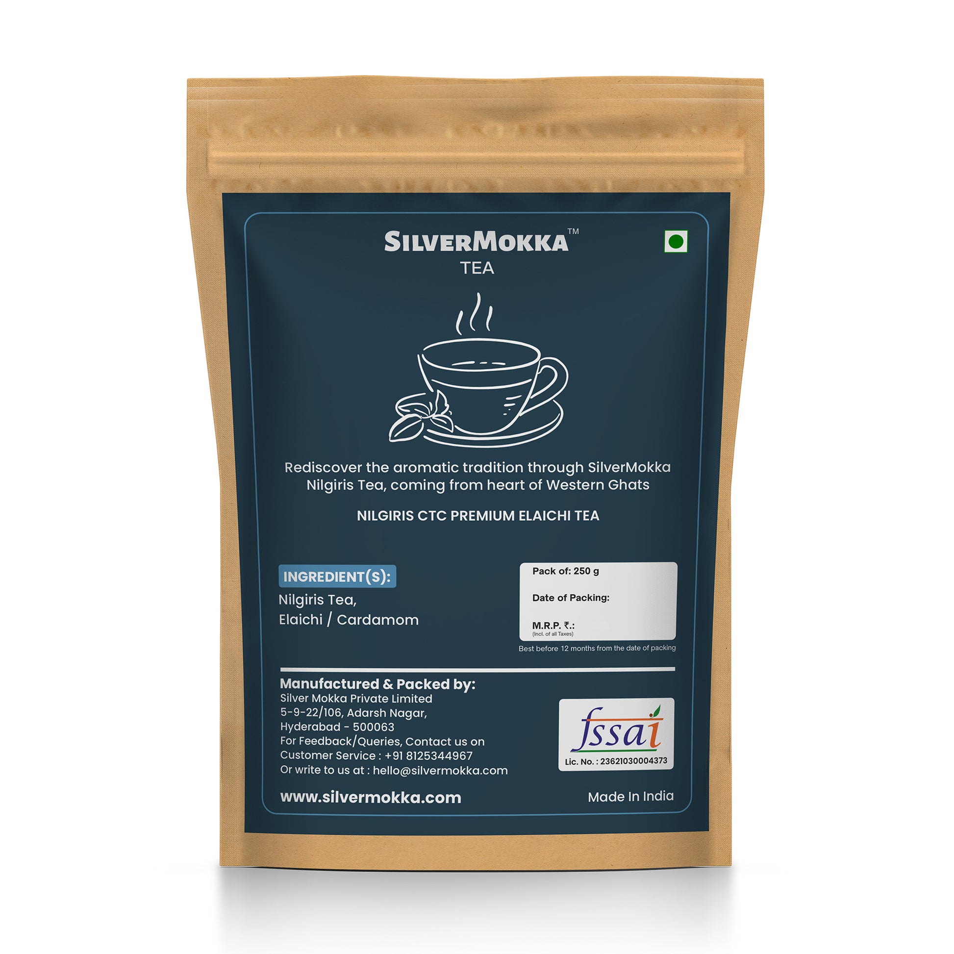 SilverMokka Premium CTC Nilgiri Elaichi/ Cardamom Tea | Authentic, Pure 100% Nilgiri CTC Tea | Aromatic, Flavourful and Strong Tea