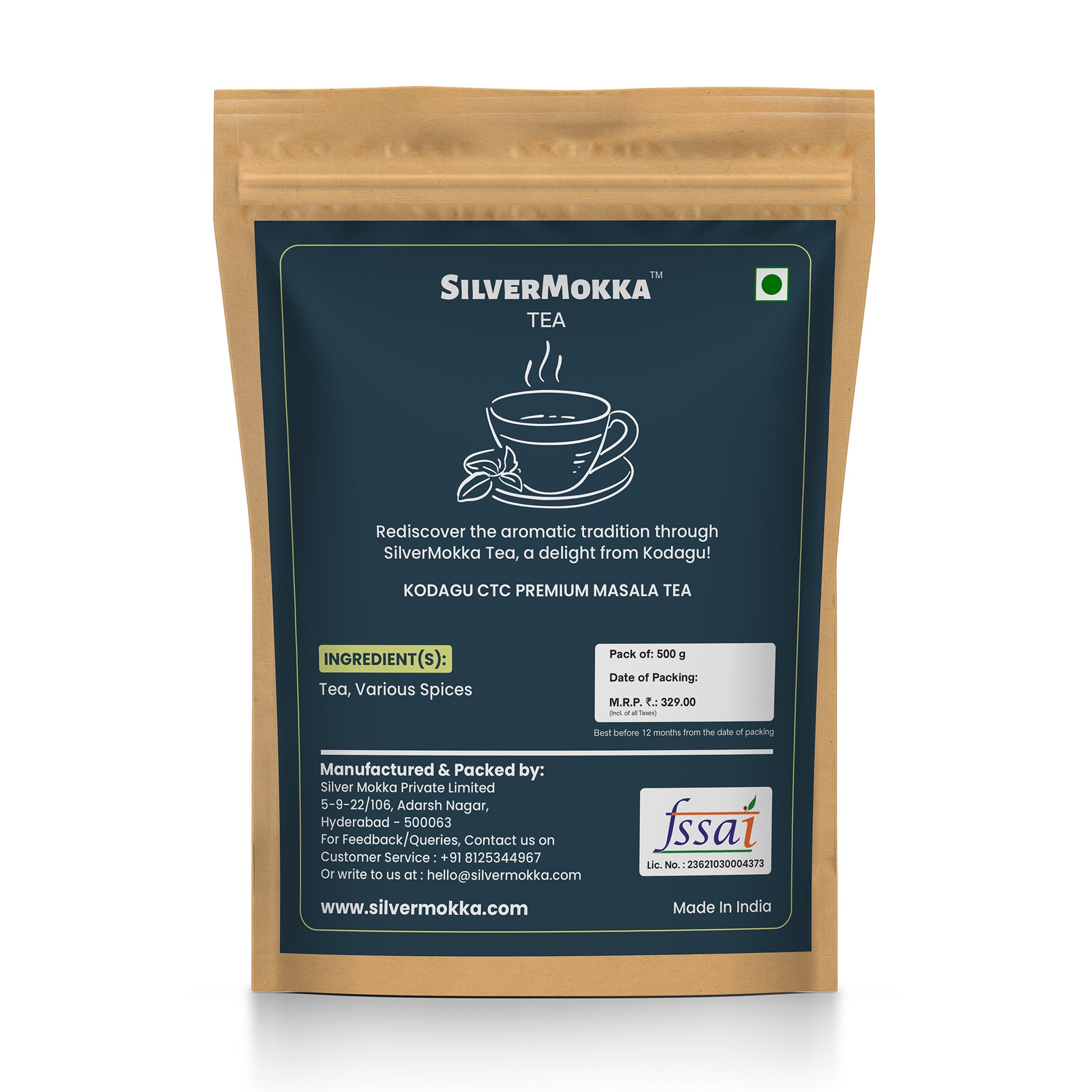 SilverMokka Premium CTC Kodagu Masala Tea | Authentic, Pure, Original 100% Kodagu Handpicked CTC Tea | Single Origin Tea | Strong, Aromatic and Flavorful Spices Mixed Tea | Zip-lock Pouch/Bag